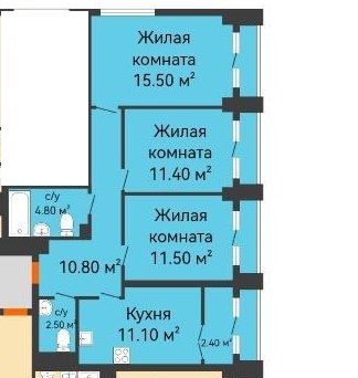 Площадь (кв.м.) Общая: 68.8 Жилая: 38.4 Кухня: 11.1 Комнаты: 15.5+11.5+11.4 68.8 / 38.4 / 11.1