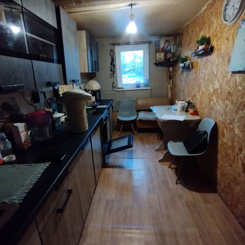 В продаже дом по ул Кузнечная. Площадь дома   53,7 м2. Дом бревенчатый , 2 этажа. Кровля железо, окна пластик. 1 этаж - комната+ кухня. 2 этаж комната. Вода и канализация в доме. Горячая вода   бойлер. Газ на участке. Участок 8 соток. Есть баня. Рассматривают обмен на 1 комн квартиру, в городе, в пригороде.