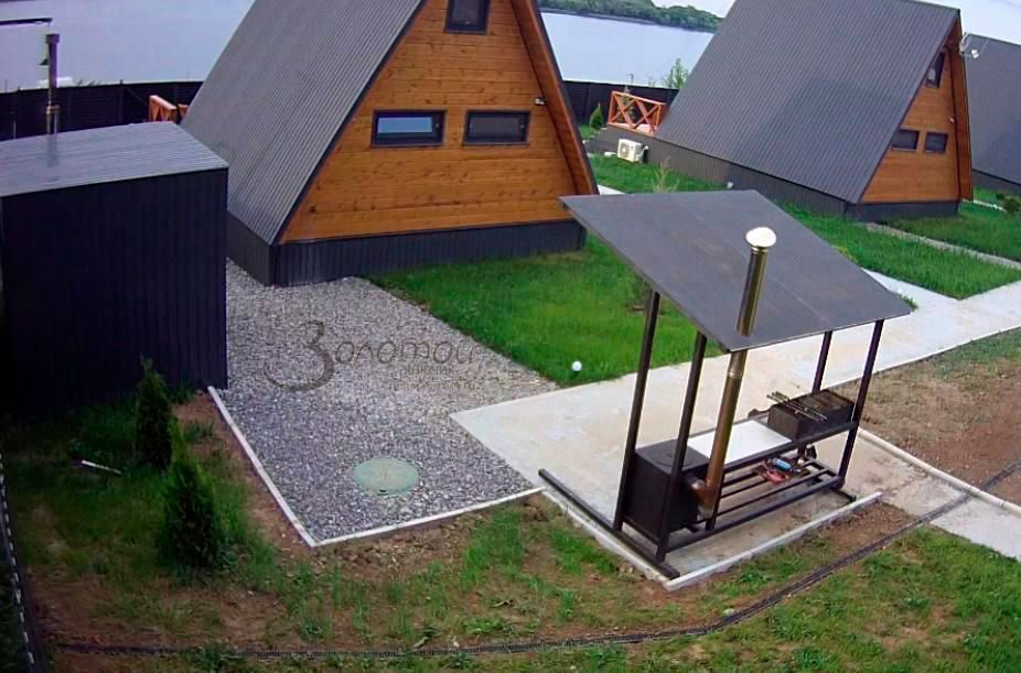 Домики построены из дорогих и качественных материалов, полностью оборудованы для комфортного проживания: индукционная плита, кондиционер, чайник, посуда, бельё, ТВ, приставка, мебель, холодильник, санузел, кухонный гарнитур, интернет и т.д. У каждого домика – своя мангальная зона, своя скважина с чистейшей водой.