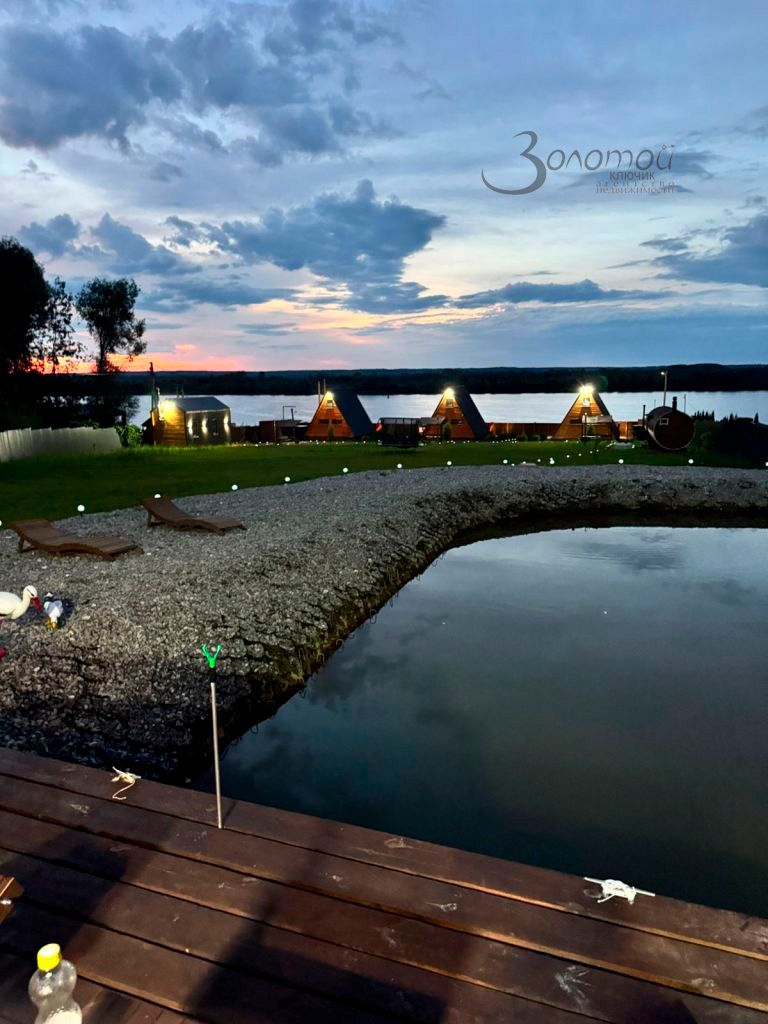 • Размещение премиум-класса: • 3 уютных домика A-frame. • Дом для персонала. • Релакс и оздоровление: • Баня-бочка с панорамным видом. • Два чана для расслабления. • Сауна в стиле Loft с видом на Волгу. • Активный отдых: • Собственный пруд (300 м²) с рыбой (белый амур, толстолобик, карп до 2 кг!). • Оборудованная беседка для рыбалки и отдыха. • Пирс для купания, рыбалки и швартовки лодок (стоянка до 6 лодок + спуск). • Песчаный пляж для загара и катания на сапбордах. • Комфорт круглый год: • Газовое отопление (котел + бойлер косвенного нагрева на 300 литров).