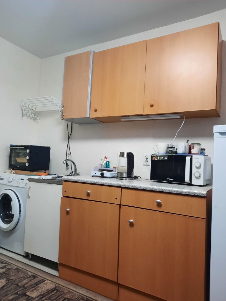 В продаже отличная комната в общежитии блочного типа на улице Фучика 12. Статус комнаты, отказы соседей не требуются. В блоке 8 комнат, два туалета, ванная, умывальник, большая кухня с электроплитами, балкон. В нашем коридоре 4 комнаты, в которых проживают по одному человеку, тихо, спокойно, порядок. Комната светлая и очень теплая, с ремонтом. Окно большое пластиковое, потолок натяжной, входная дверь новая. В комнате горячая и холодная вода, установлена стиральная машина. В комнате остается вся мебель: кухонный гарнитур, шкаф, диван, а также новый двухкамерный холодильник Позис и новая стиральная машина Атлант. В кухне установлены свои шкафы.