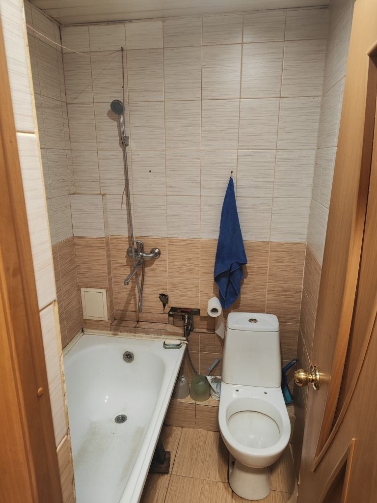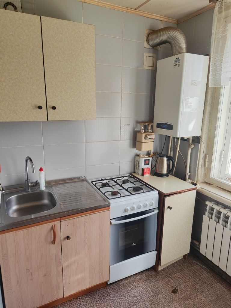 Стандартная планировка для квартиры "народная стройка" общая площадь 25 кв.м., комната 15,3 кв.м., кухня 4,6 кв.м., совмещенный санузел с ванной. горячая вода и отопление от двухконтурного котла.