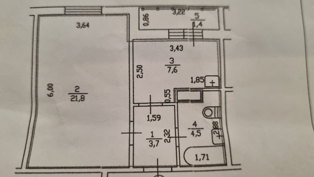 Площадь (кв.м.) | Общая: 37.6 Жилая: 21.8 Кухня: 7.6 37.6 / 21.8 / 7.6 |
