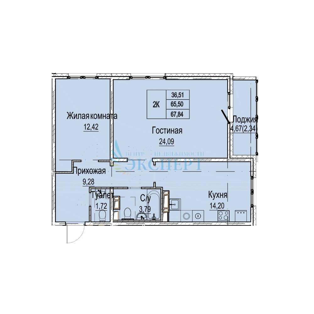 Площадь (кв.м.) | Общая: 70.14 Жилая: 36.51 Кухня: 14.2 Комнаты: 24.09+12.42 70.14 / 36.51 / 14.2 |