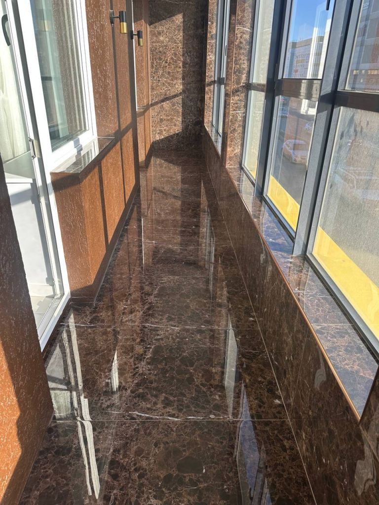 Лоджия на два окна площадью более 11 кв.м застеклена и оснащена системой « теплые полы».