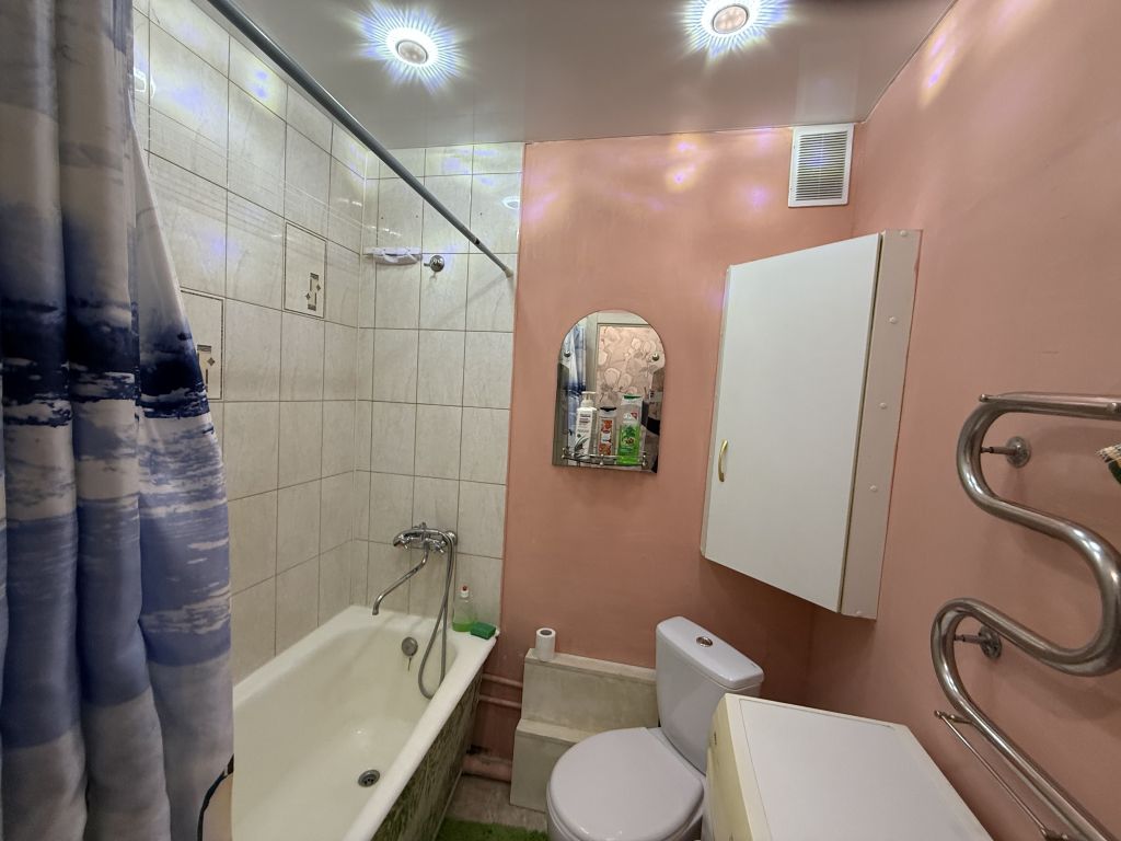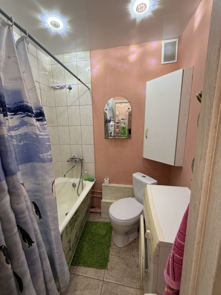 С/уз. совмещен, стены выложены   современной плиткой, новая   белая сантехника, импортные смесители, заменены все трубы, установлены счетчики.